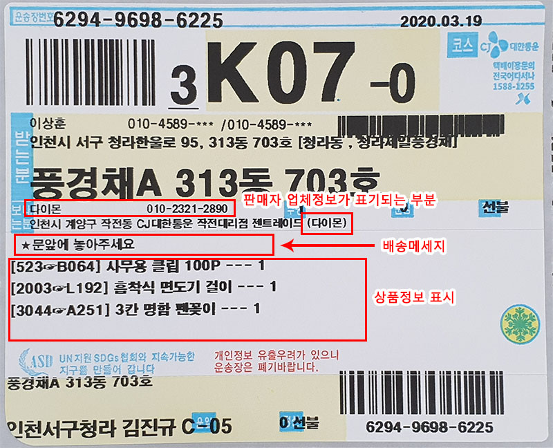 젠트레이드는 CJ대한통운 택배를 사용합니다. (송장샘플 사진 포함)
